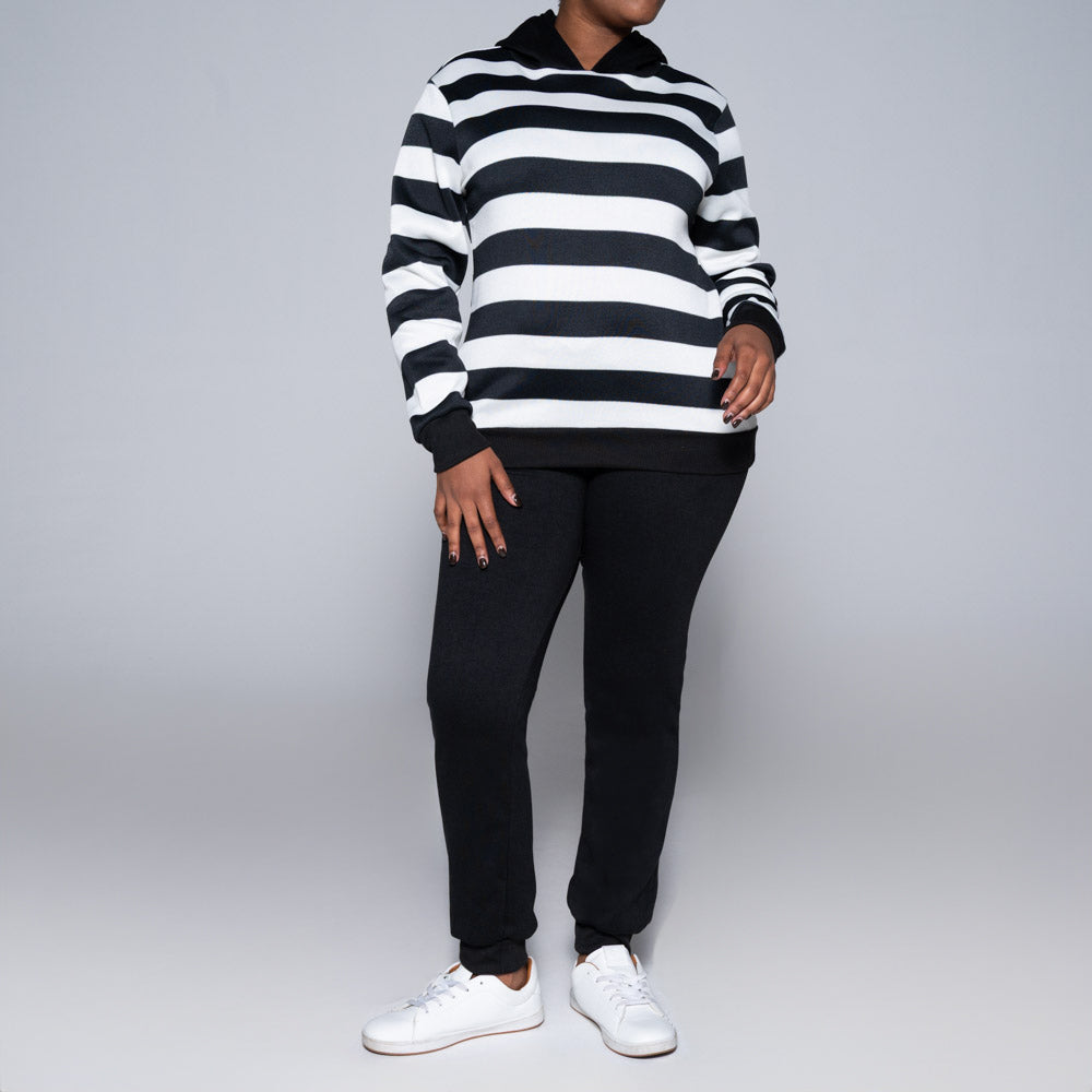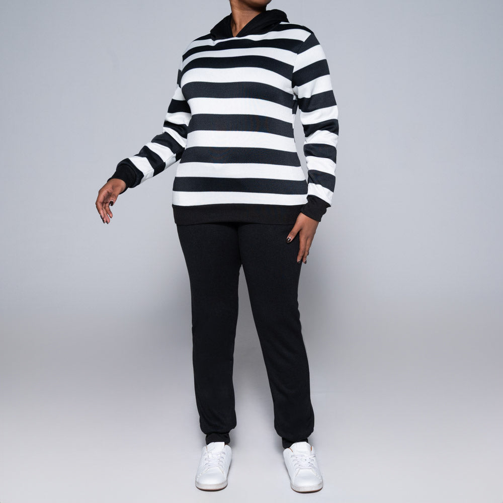 Black Striped Hooded Track Top
