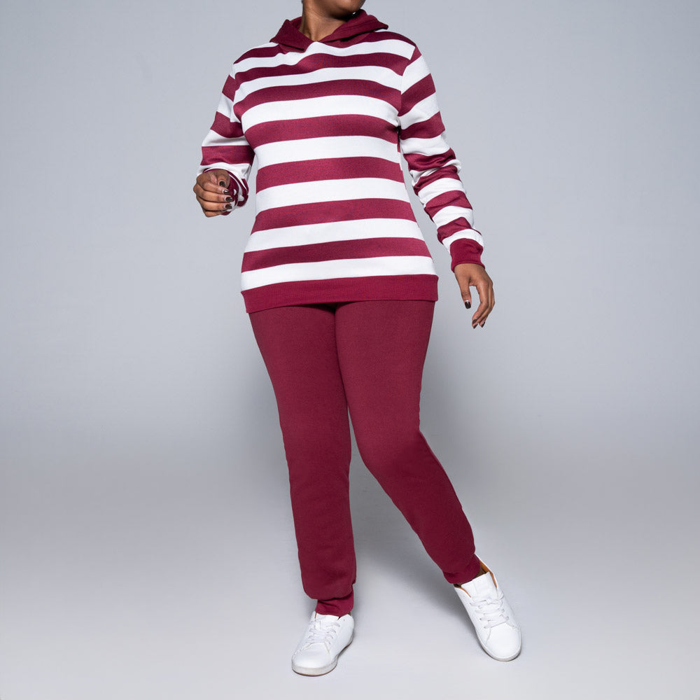 Burgandy Striped Hooded Track Top