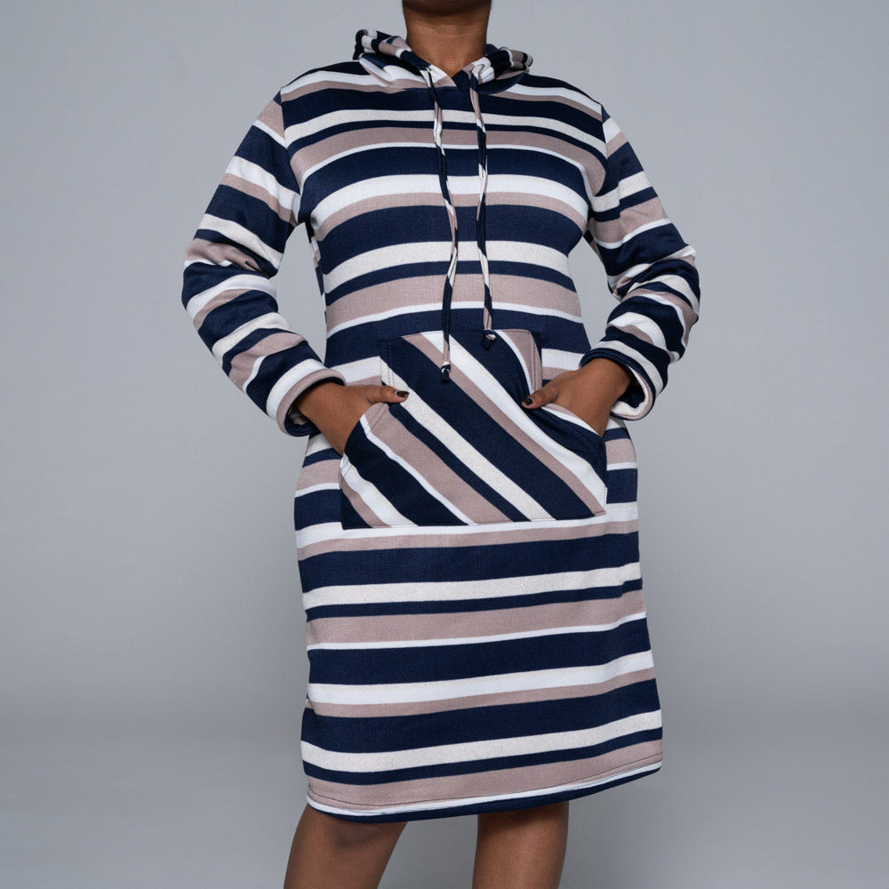 Striped Spun Poly Hooded Dress