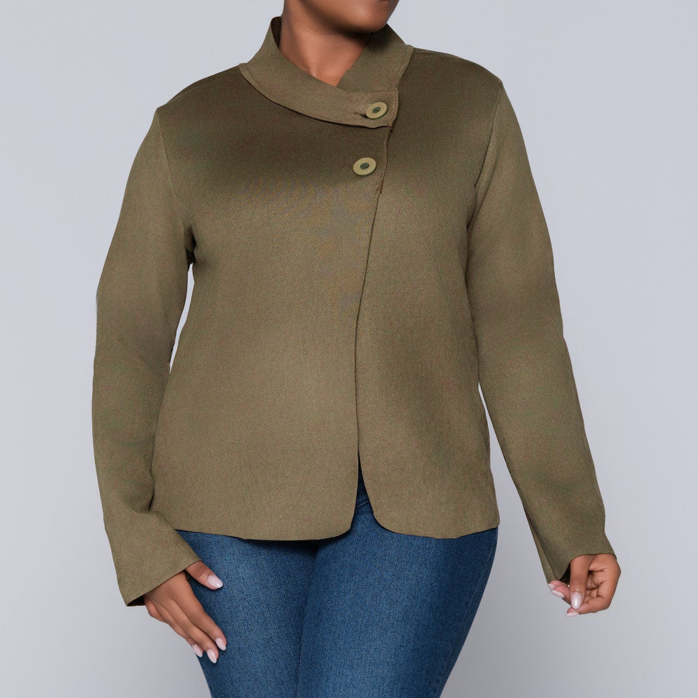 Plus Size Long Sleeve Grey Boucle Melton Jacket