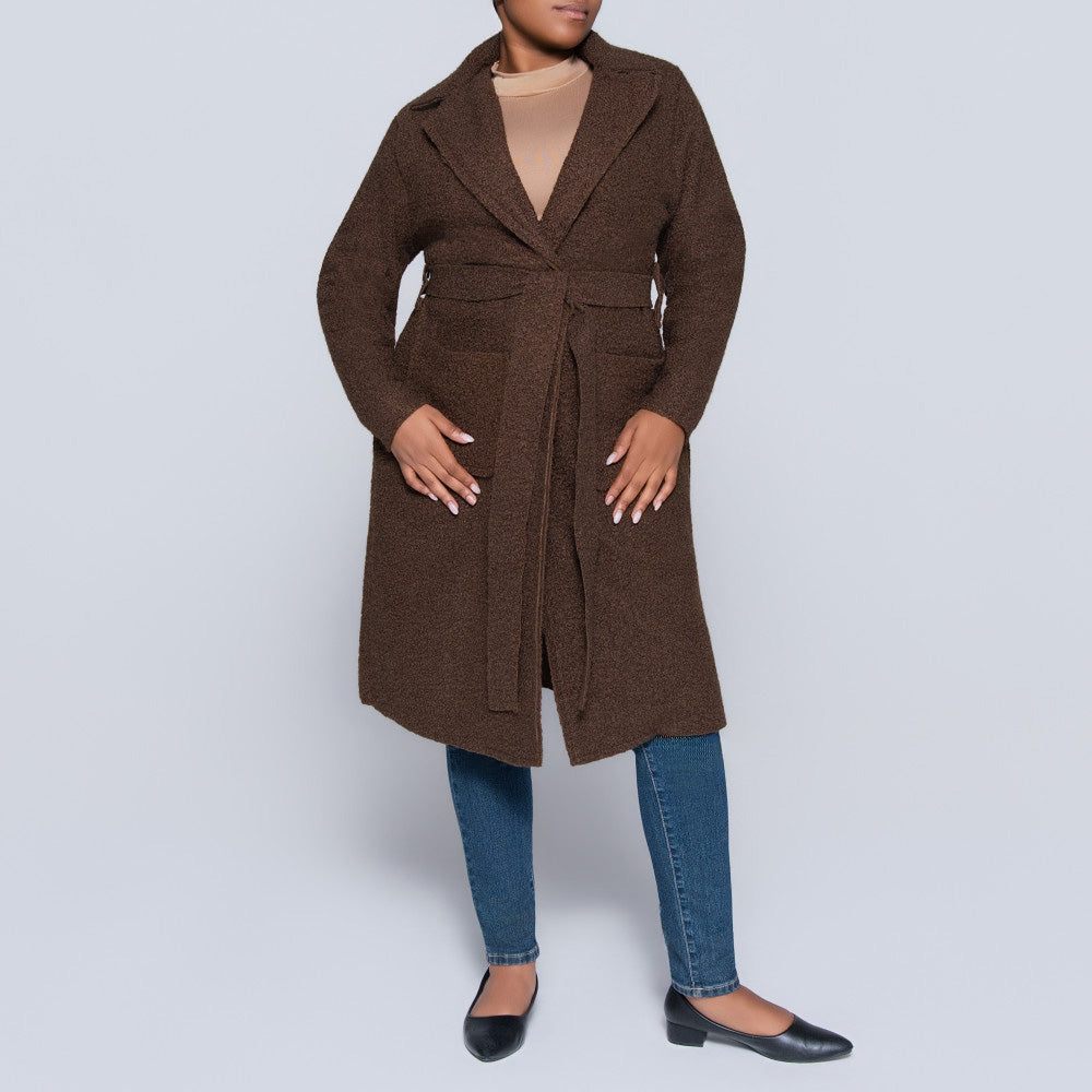 Plus Size Long Sleeve Choc Boucle Melton Jacket