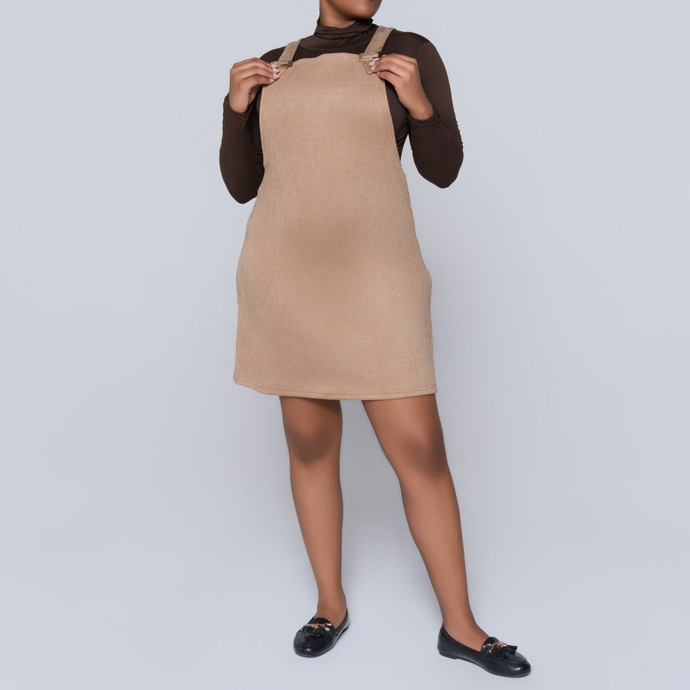 Stone Suede Scuba Pinafore Dress