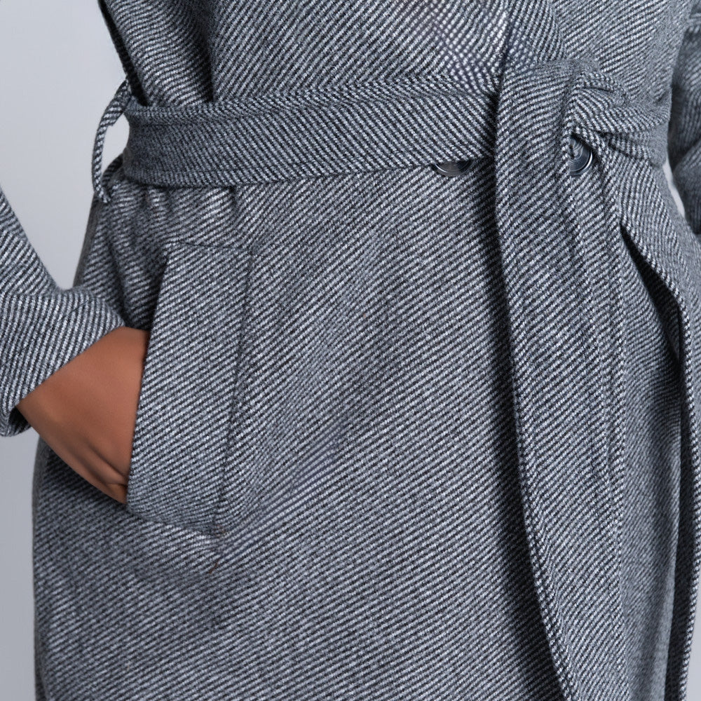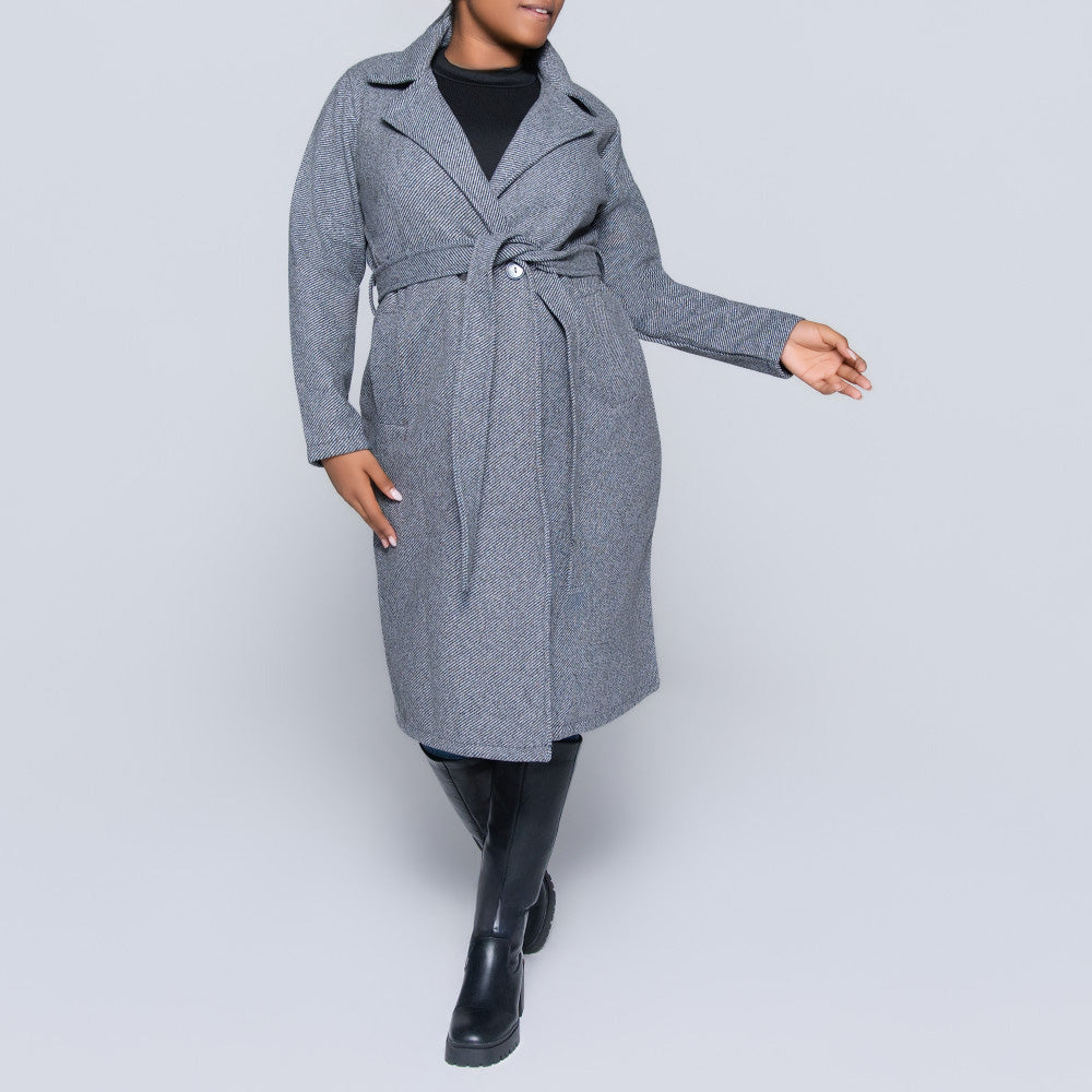 Tie-Belt Charcoal Plus Size Melange Twill Jacket