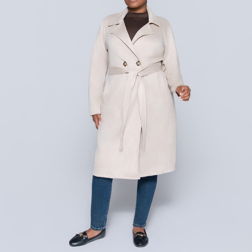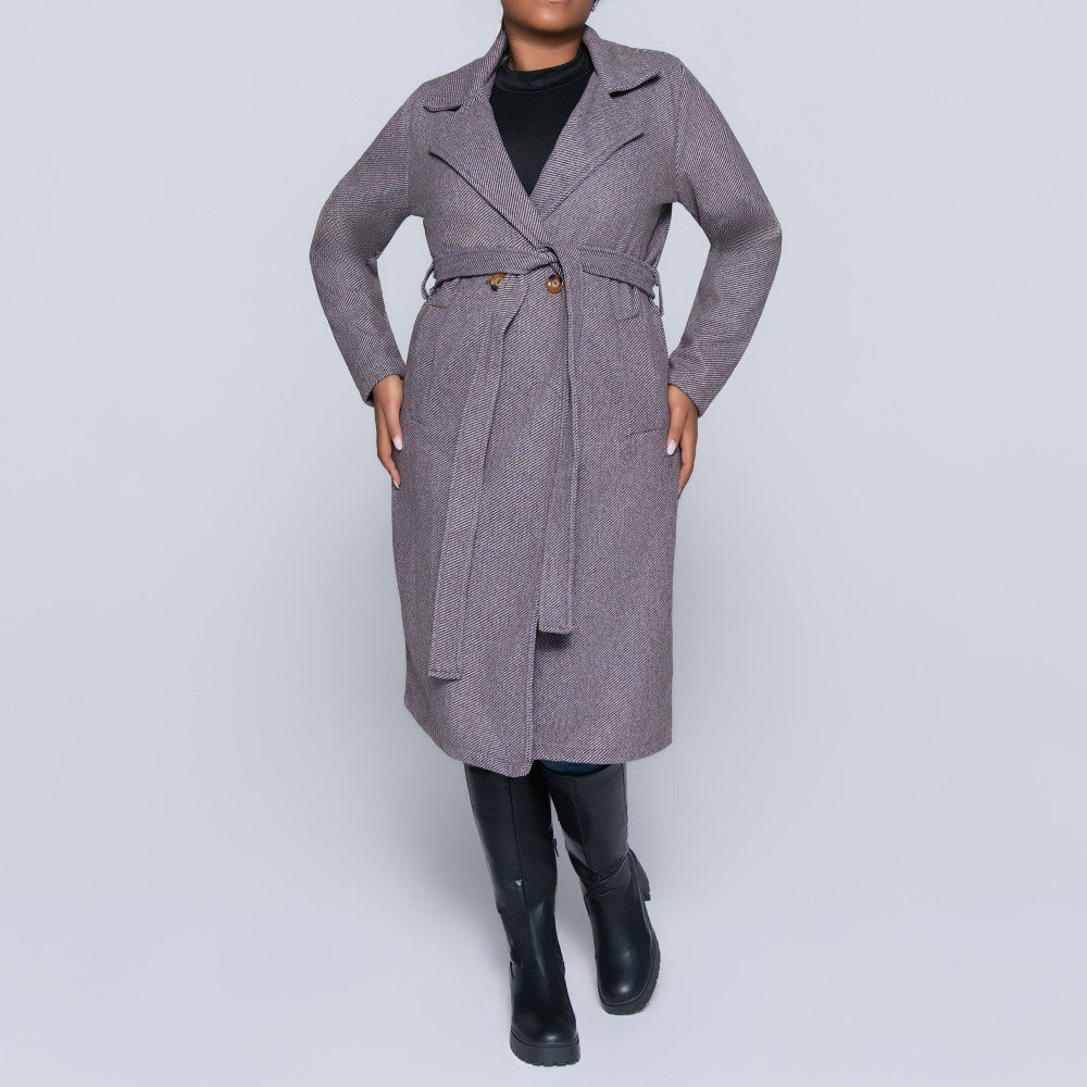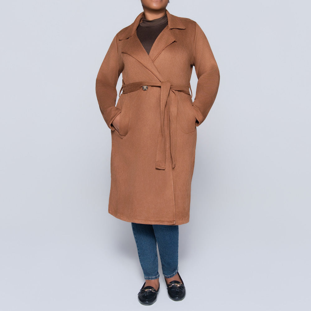 Tie-Belt Chocolate Plus Size Melange Twill Jacket