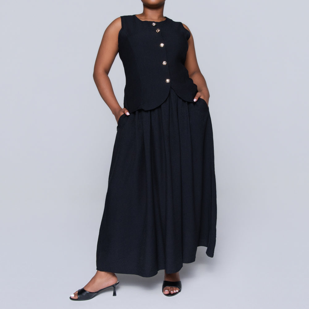 Sleek black skirt that's your go-to for effortless style. Pair it with our black waistcoat for a sharp, put-together look that works from office to evening out.