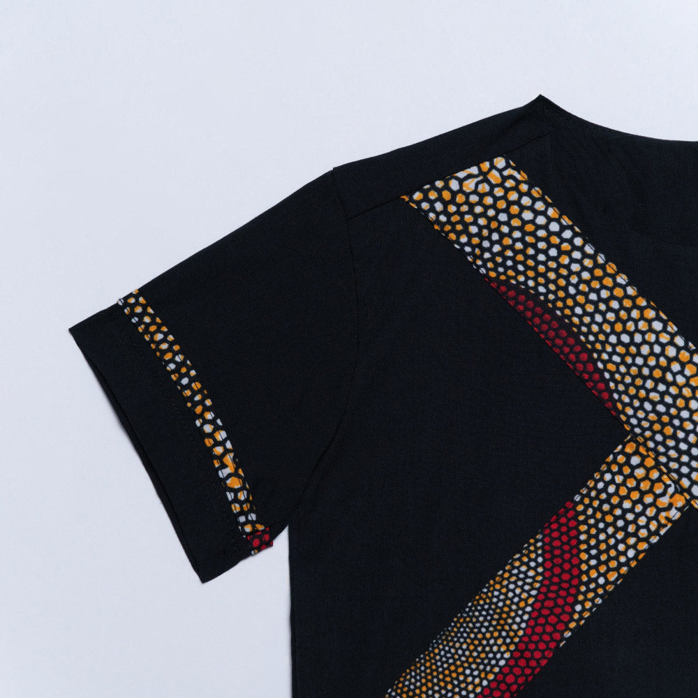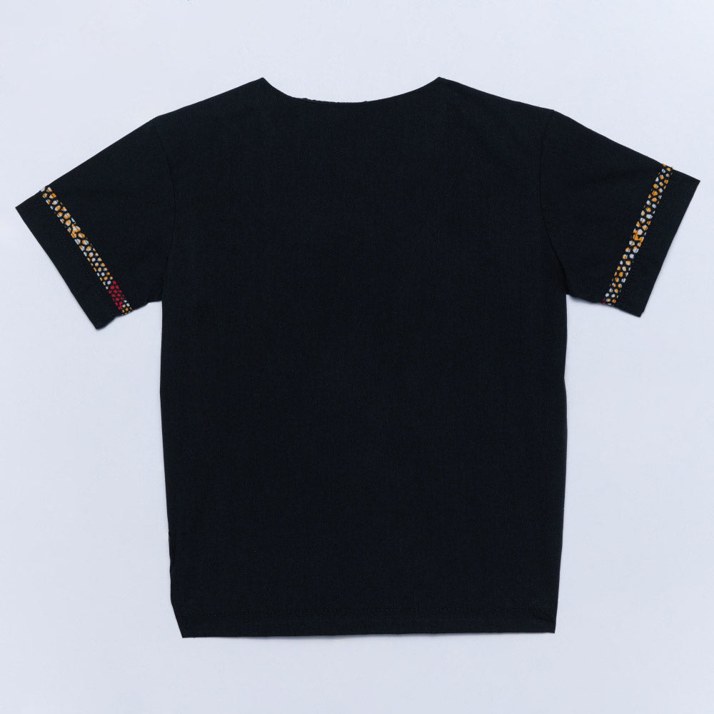Add some cool vibes to your boy’s wardrobe with this Black Wax Ethnic Print Top.