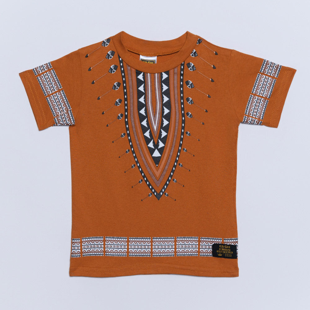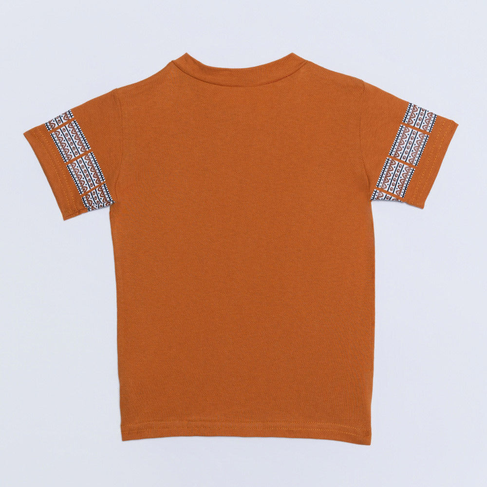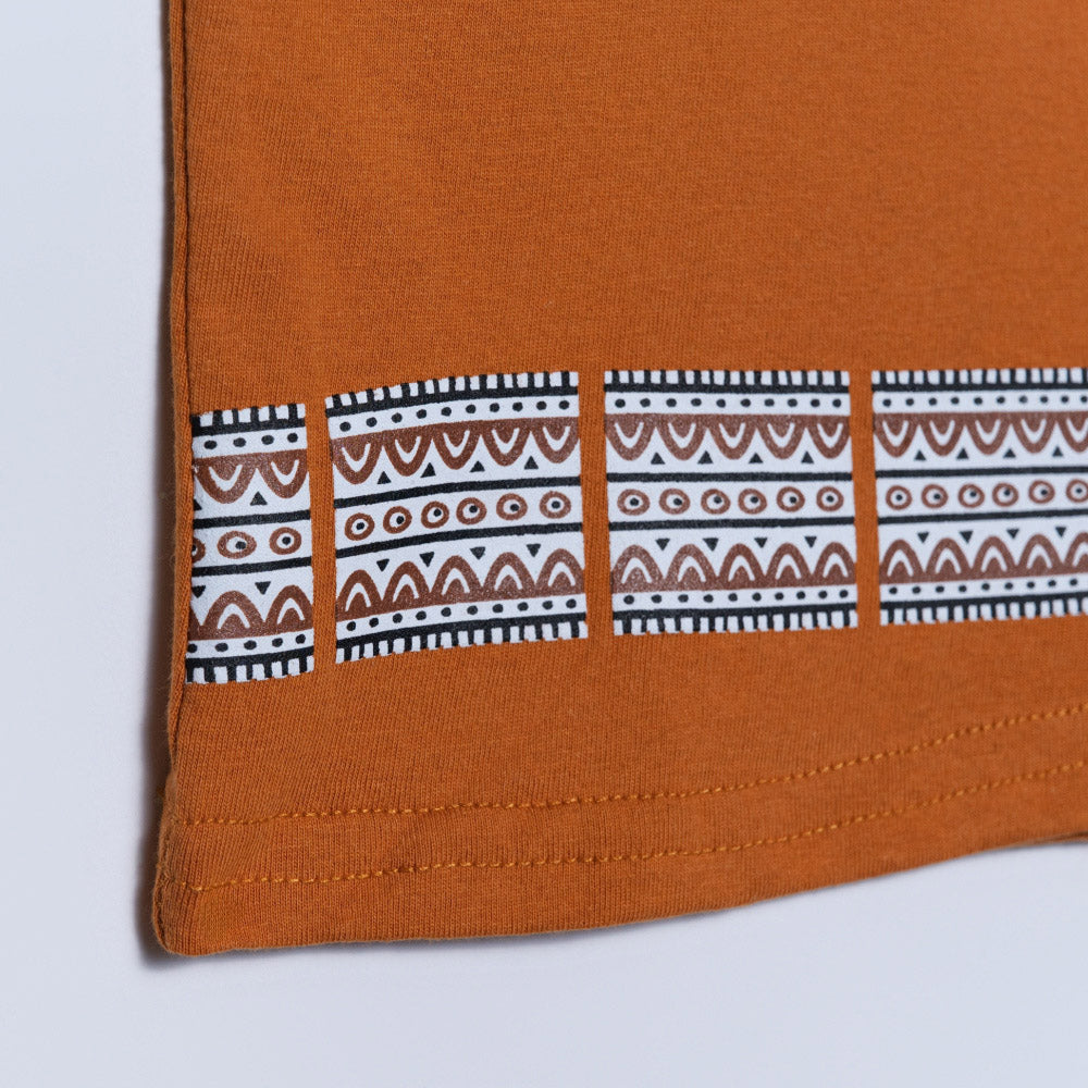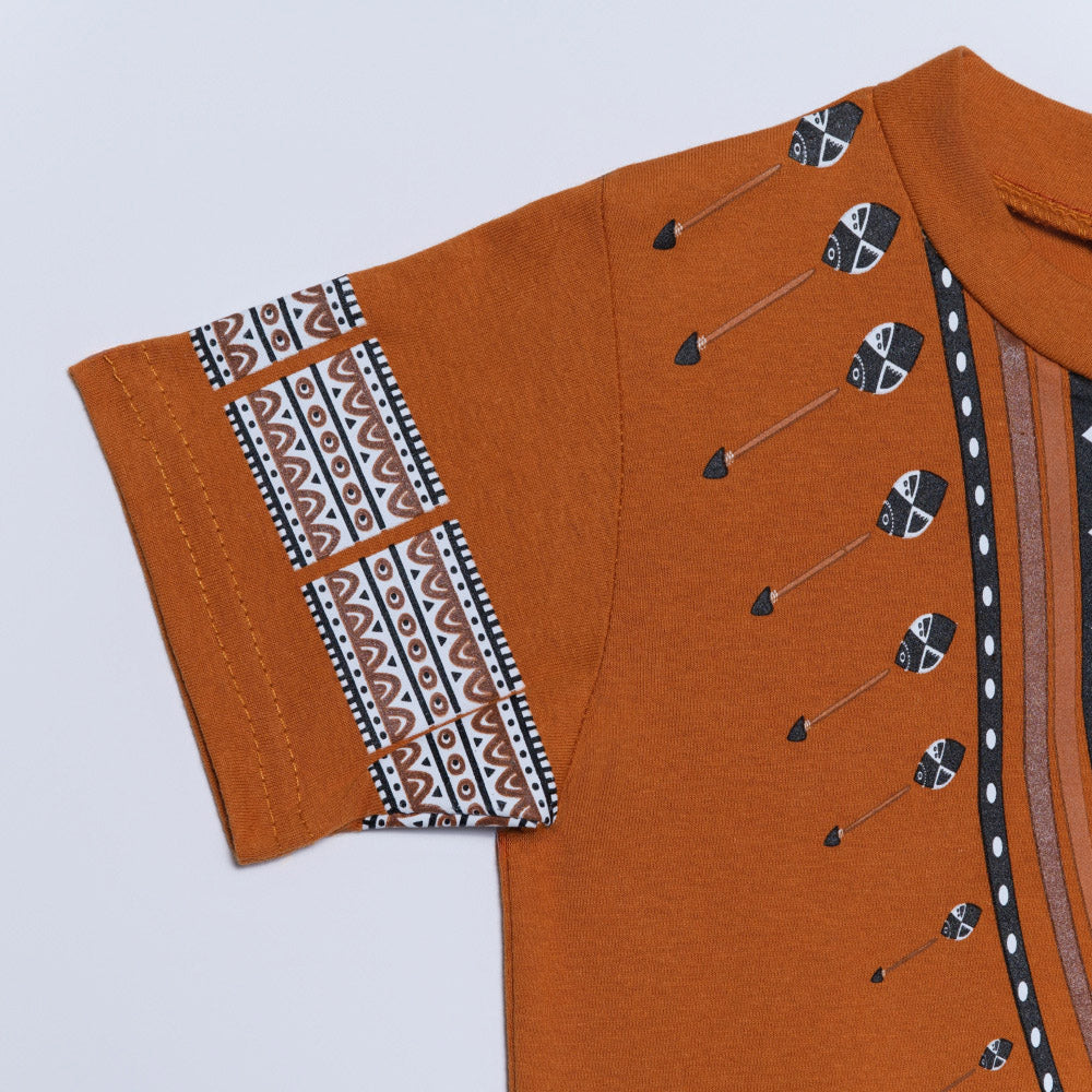 Brighten up his wardrobe with this Boys Mustard Ethnic Print Top.