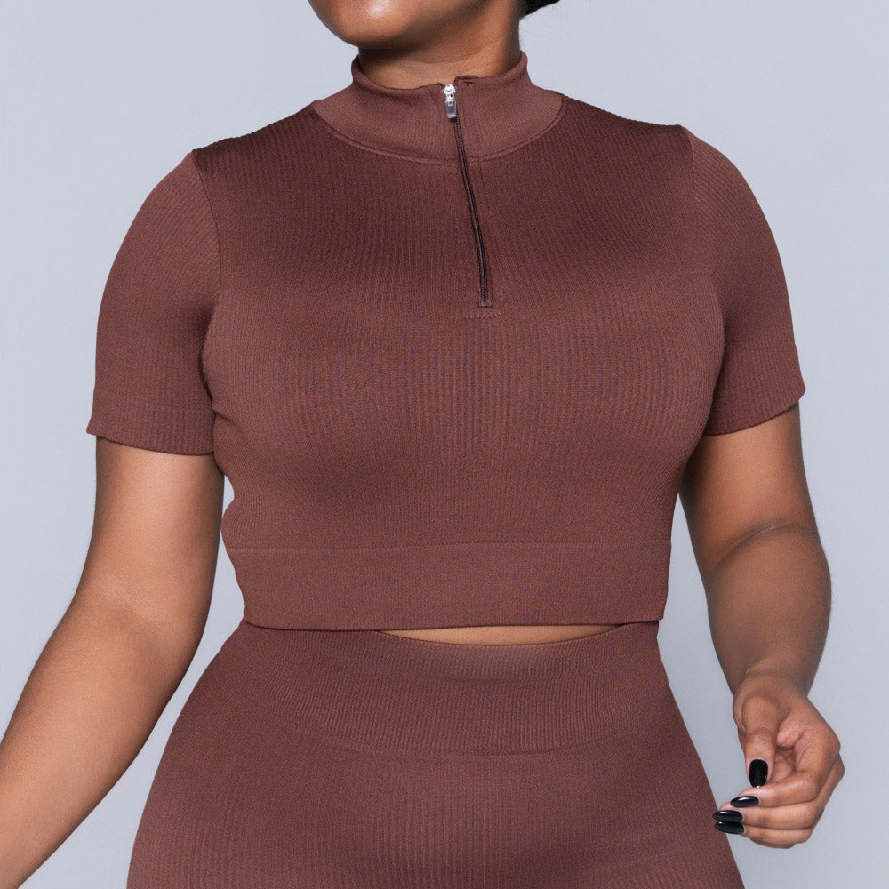 Brown Zip Detail Gym Top