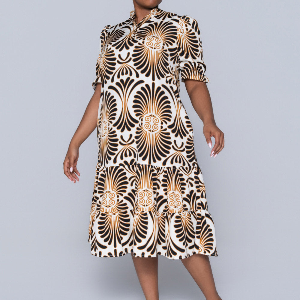 Step out in style with this playful Plus Size Short Sleeve Printed Tunic. Its vibrant print and comfortable fit make it perfect for any casual day when you want to feel fabulous and free.
