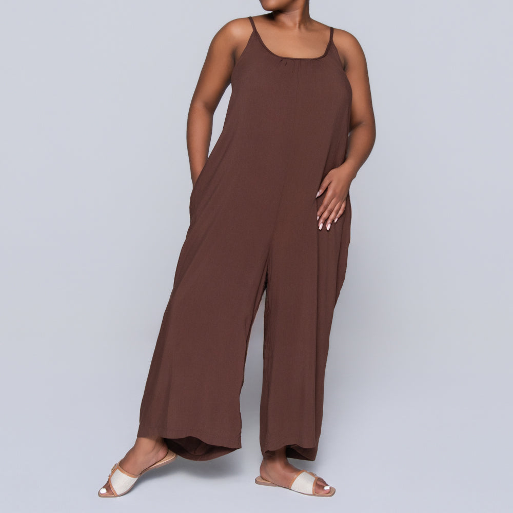 Strappy Chocolate Viscose Jumpsuit